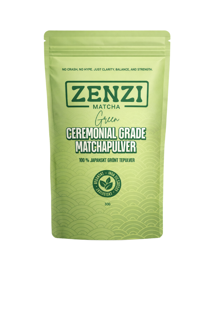 Matcha är finmalet grönt tepulver från Japan. Till skillnad från vanligt te, där du bara dricker ett extrakt, konsumerar du hela bladet med matcha - vilket gör det extra näringsrikt. På Zenzi matcha är vår matcha rik på antioxidanter, L-teanin och naturligt koffein. Fördelarna? Skarpare fokus, mjukare energi och en fyllig, balanserad smak.